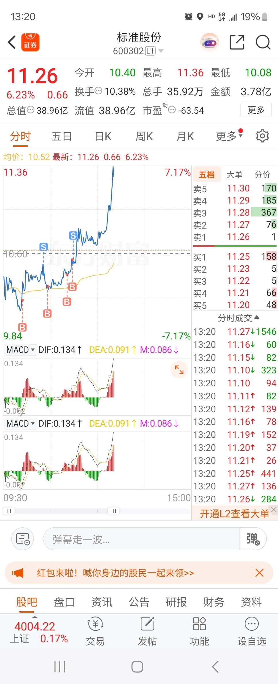 $标准股份(SH600302)$ 吃点小肉