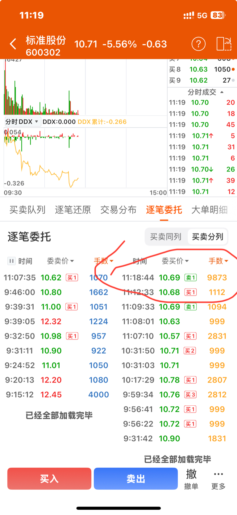 $标准股份(SH600302)$ 所谓托单必跌,9873手的大托,单子价值1055w