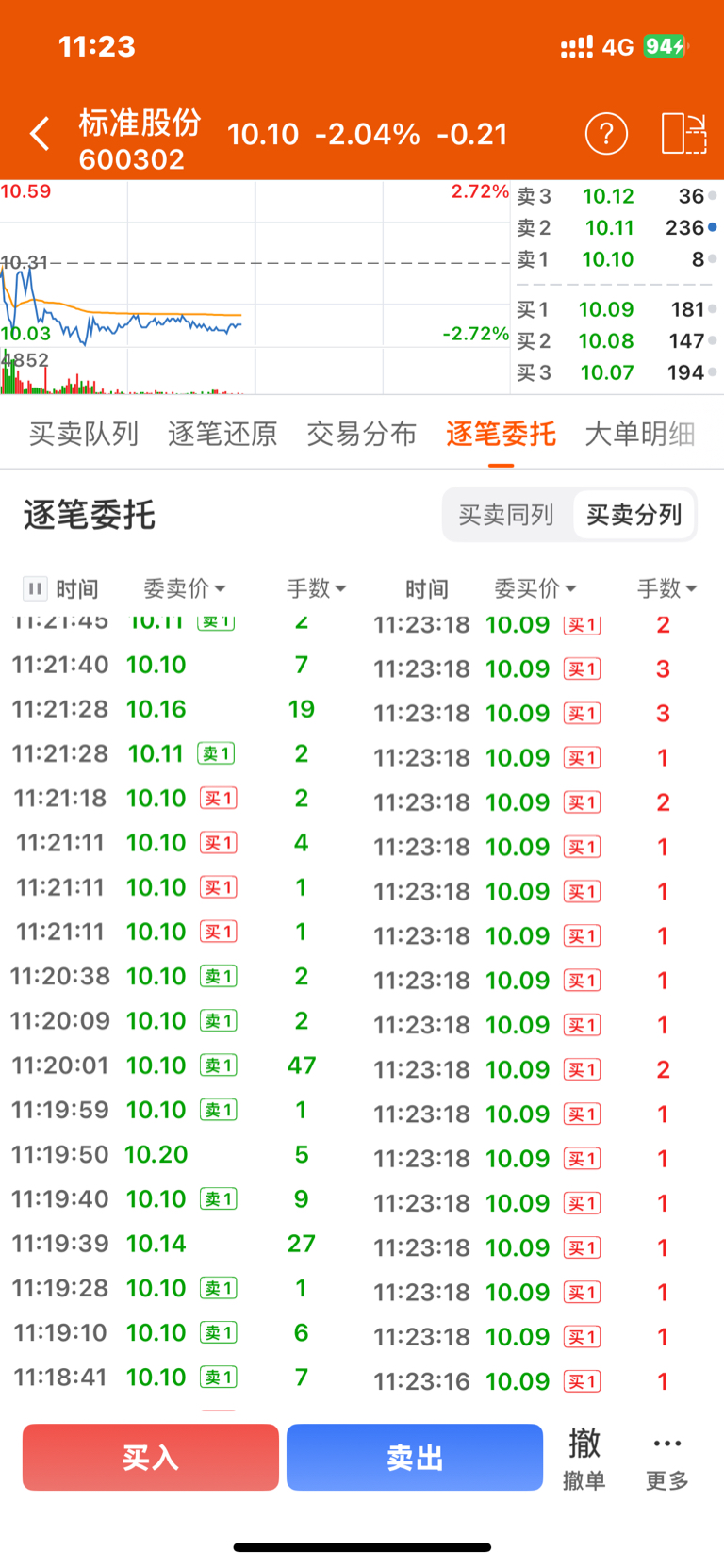 $标准股份(SH600302)$ 真有散户1手1手买吗