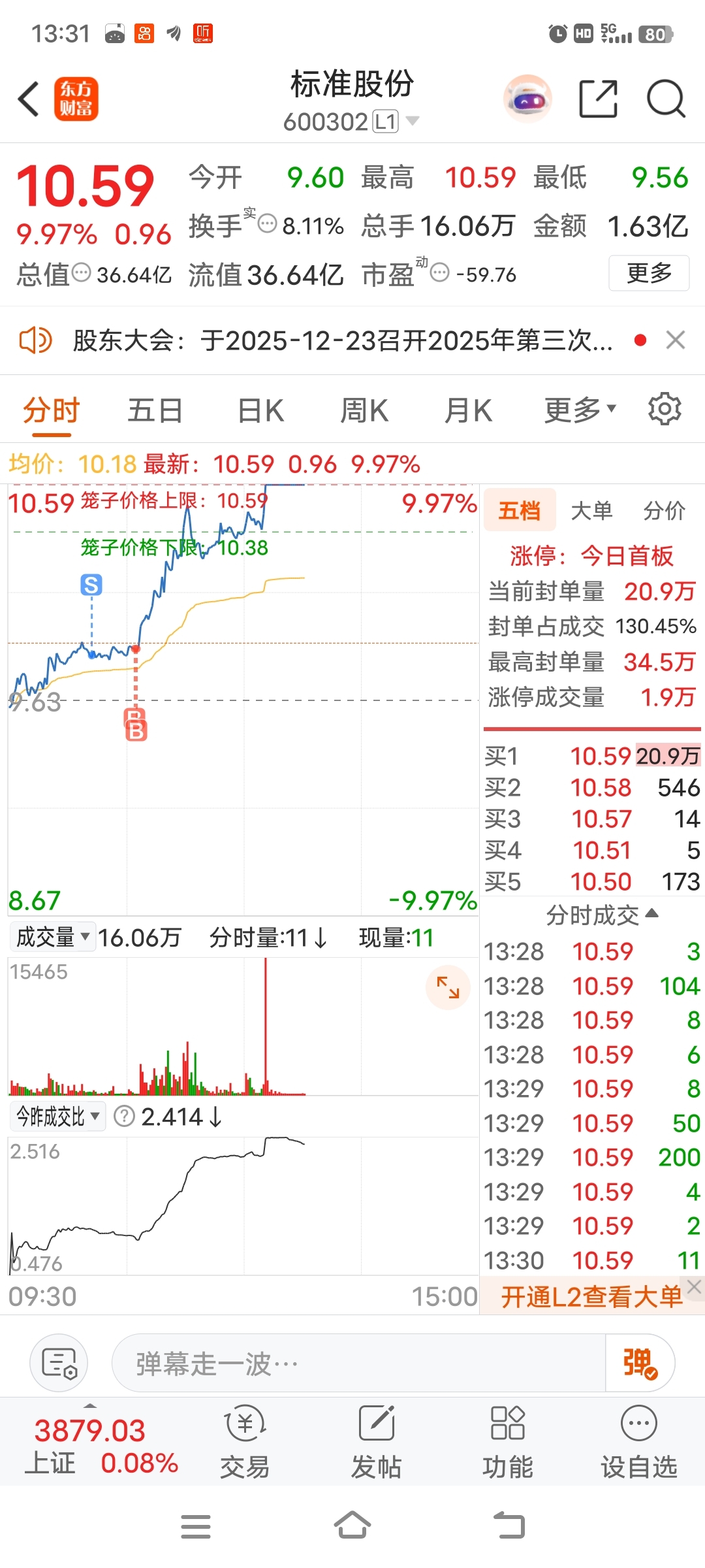 $标准股份(SH600302)$ 准备T一下,感觉不对又接回来了