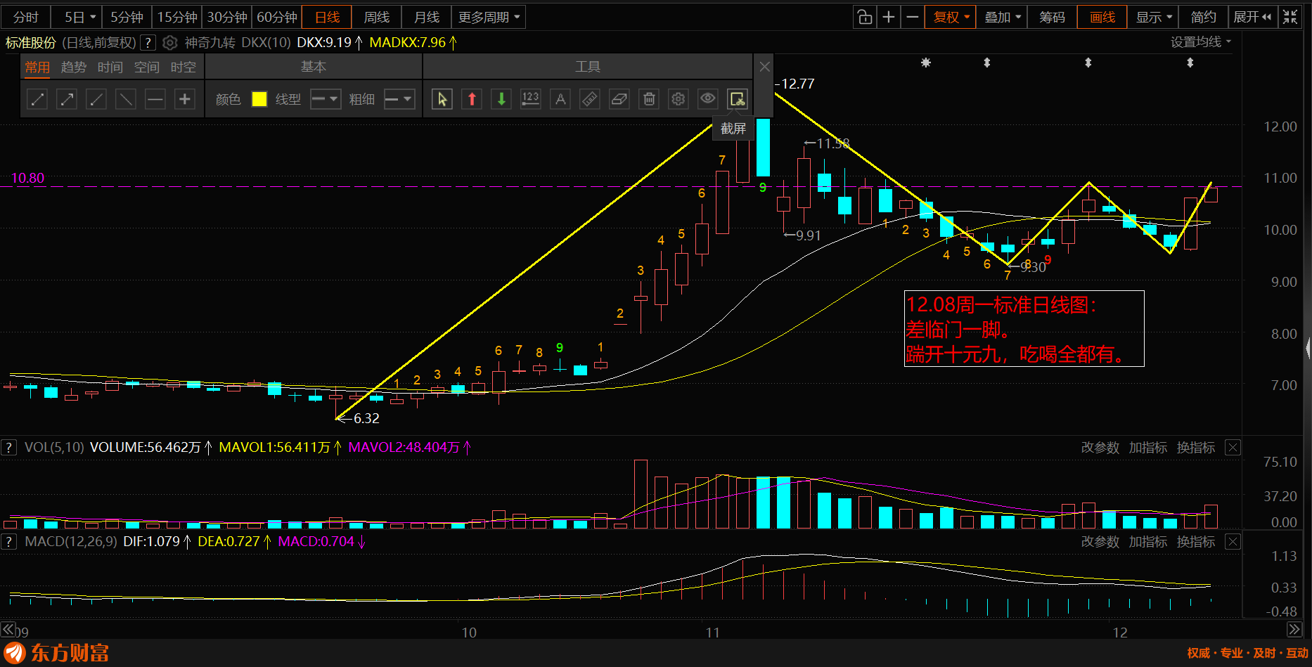 压力10.88元。差临门一脚。