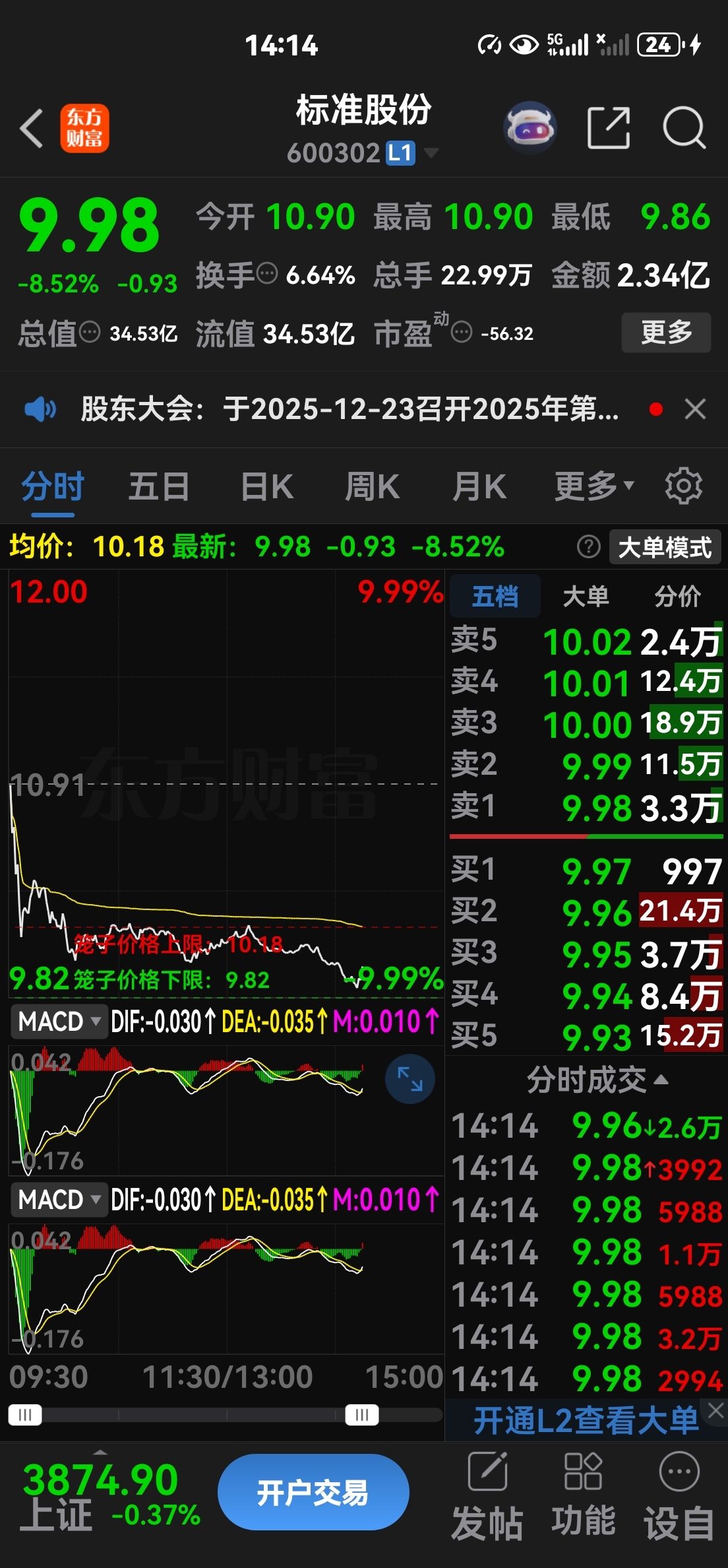 (标准股份)我们上海的重组股,9.98哥超底,相信的跟,跌的没道理,主力在里面
