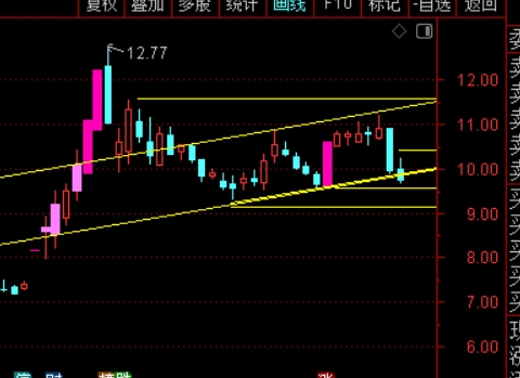 目前处于下降通道,弱势行情,已经跌破上升趋势50%半分位,9.6为初步支撑,如果