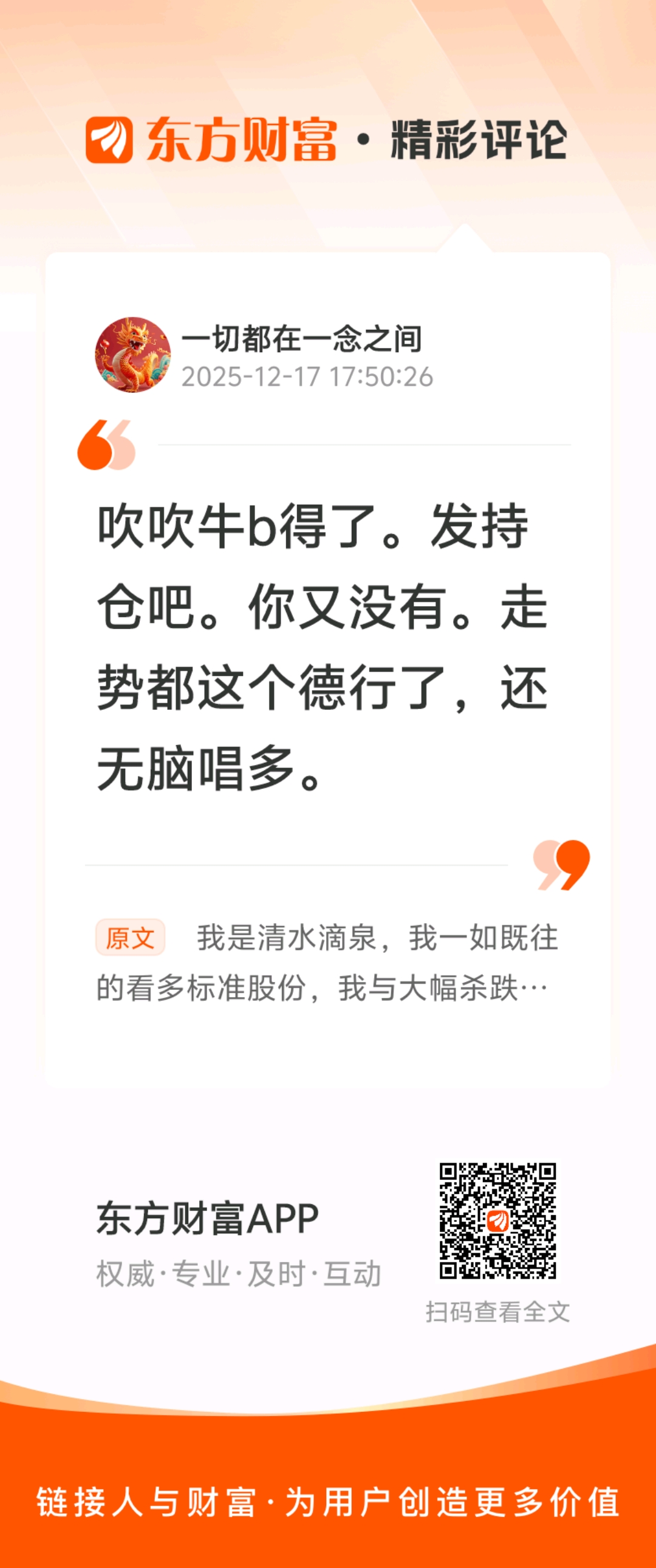 温馨提示: 1.根据《证券法》规定,禁止编造、传播虚假信息或者误导性信息,扰乱证券市场;2.用户在本社区发表的所有资料、言论等仅代表个人观点,与本网站立场无关,不对您构成任何投资建议。用户应基于自己的独立判断,自行决定证券投资并承担相应风险。《东方财富社区管理规定》