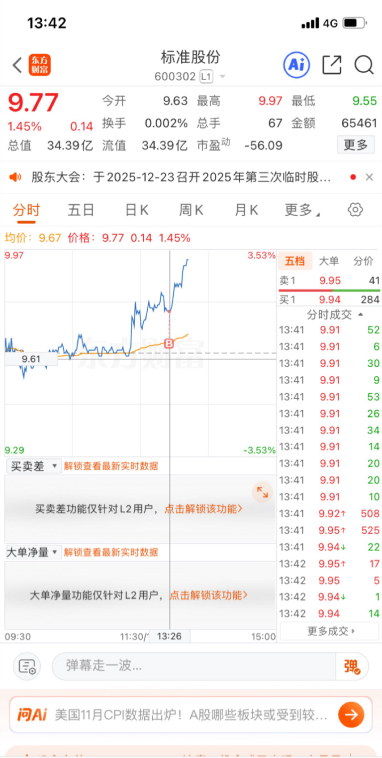 9.77低吸介入$标准股份(SH600302)$ #强势机会# #实盘记录# #投资干货# #复盘记录#