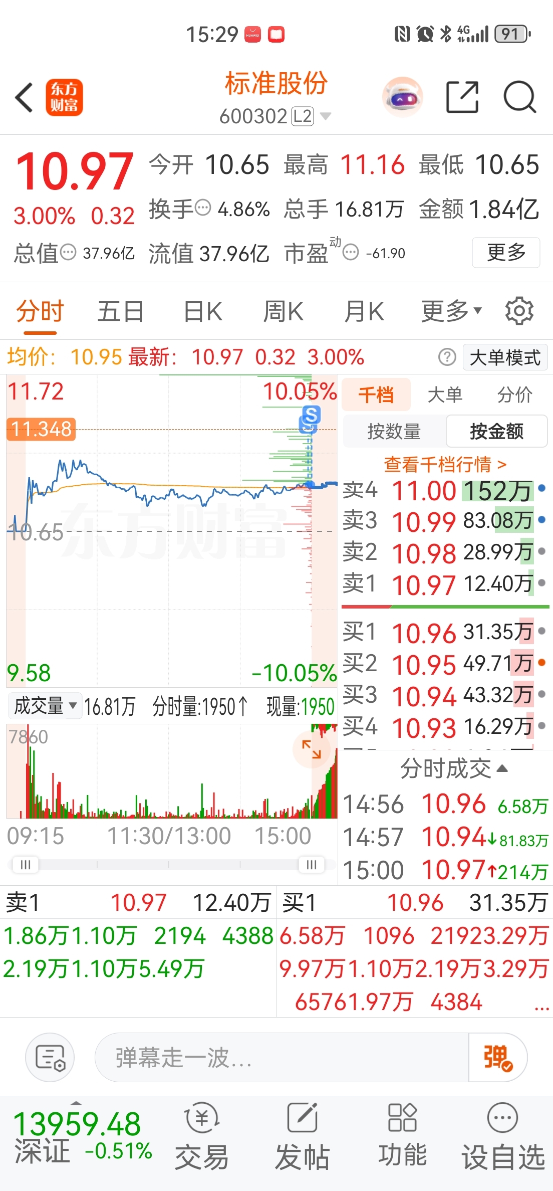 $标准股份(SH600302)$ 浪费两个月时间,,亏倒是没亏,稍微搞点利息走掉了。