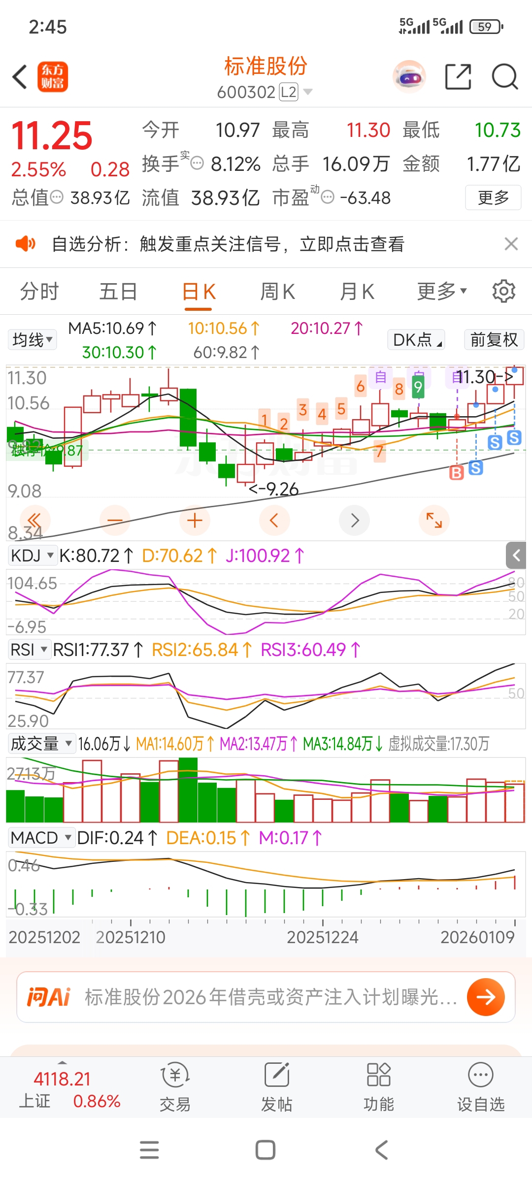 $标准股份(SH600302)$ 诱多的感觉,走势太漂亮了,一直没敢 T,留下的发财。。。