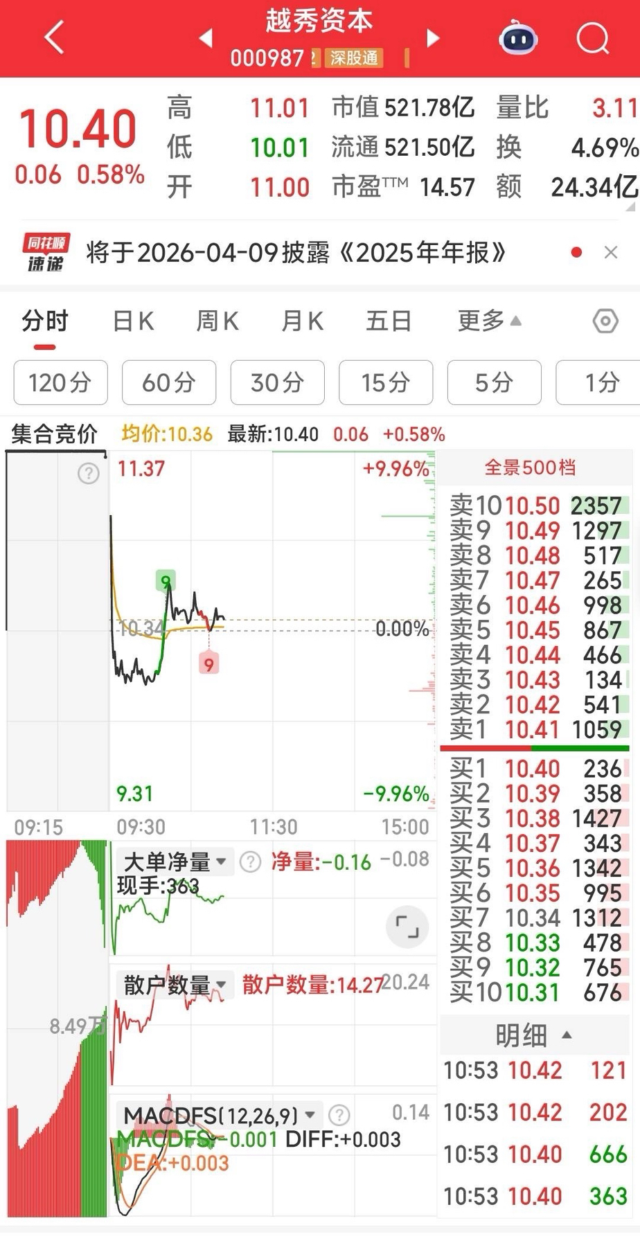 上午战况很简单今天10.1元建仓越秀资本,12.3元加仓标准股份。见好就收了保变
