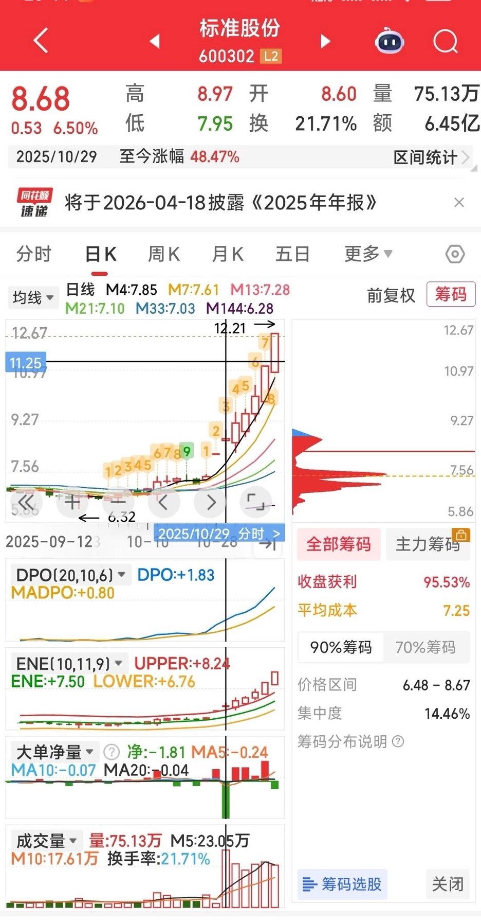 标准股份我们重点提示建仓价在10.5元左右!!!