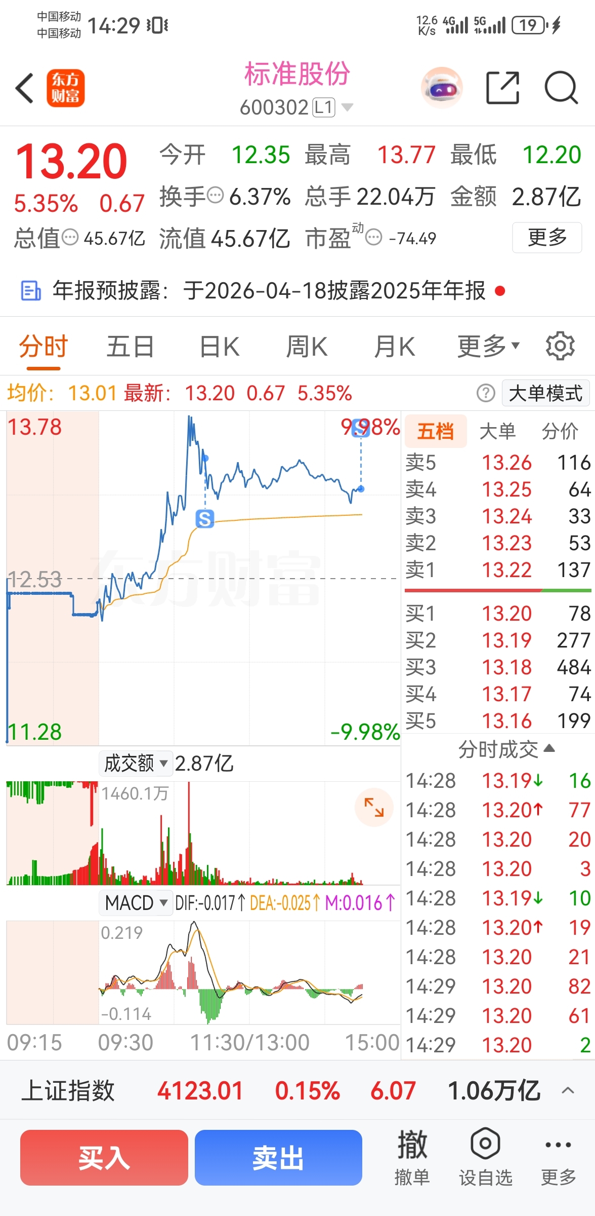 $标准股份(SH600302)$ 这么会洗盘那就把筹码交给你,本来想留底仓,午盘主力资金还在继续流出,先落袋为安了