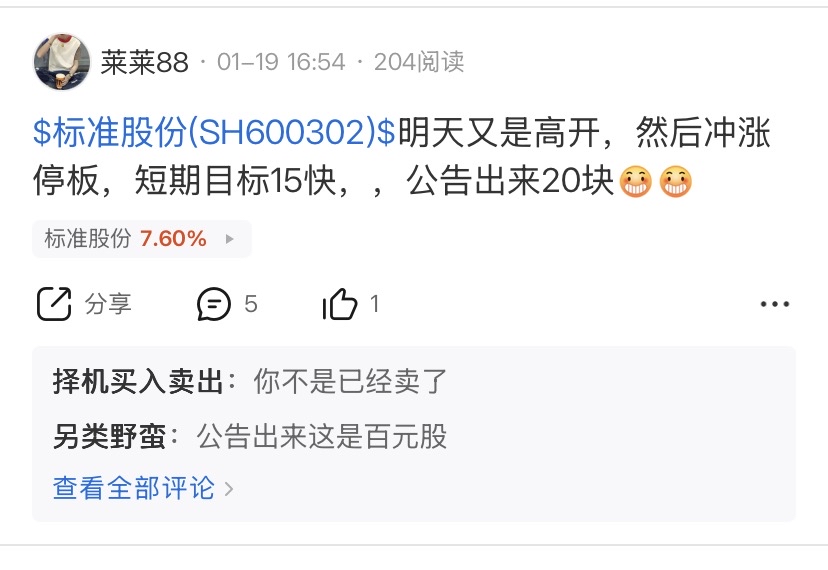 $标准股份(SH600302)$ 果然不出所料,离目标不远了