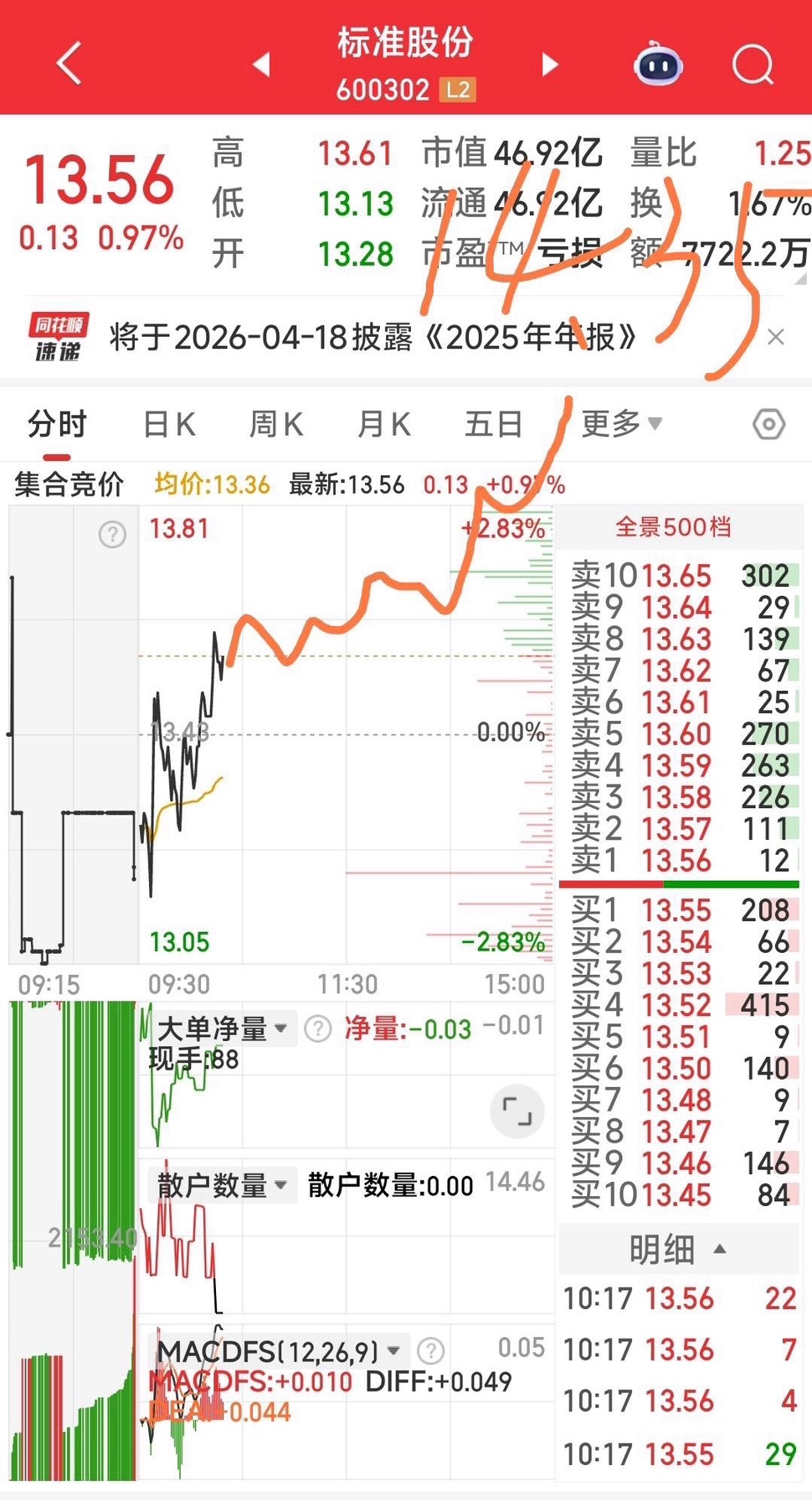 在大家都绝望时,我昨天就给标准股份作了周三至周五的预期展示,现在依然生效。