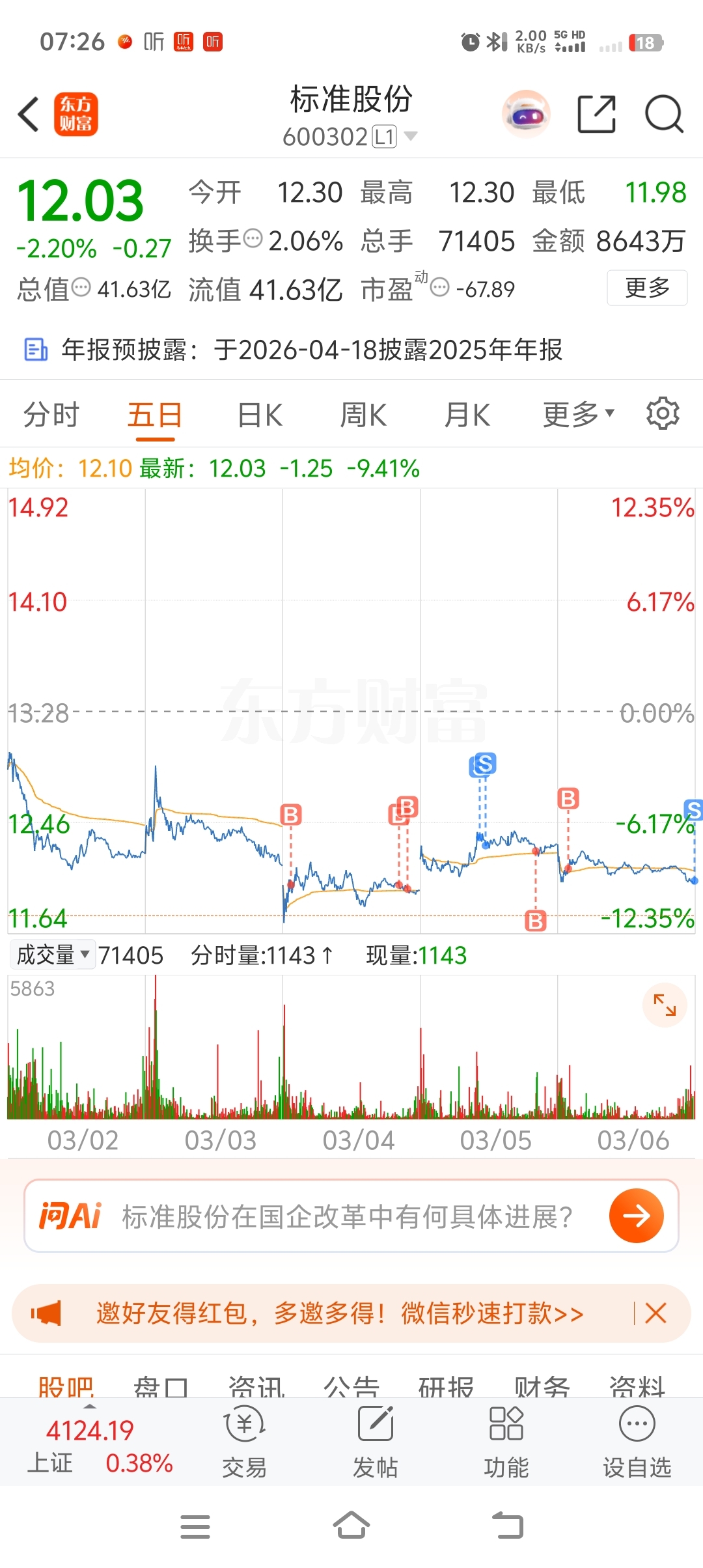 $标准股份(SH600302)$