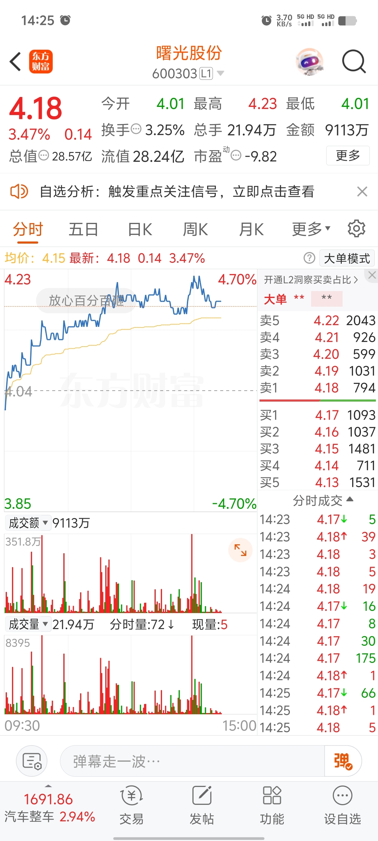 $曙光股份(SH600303)$ 进来两个星期,还是这样子,刚好在这条线,恶心