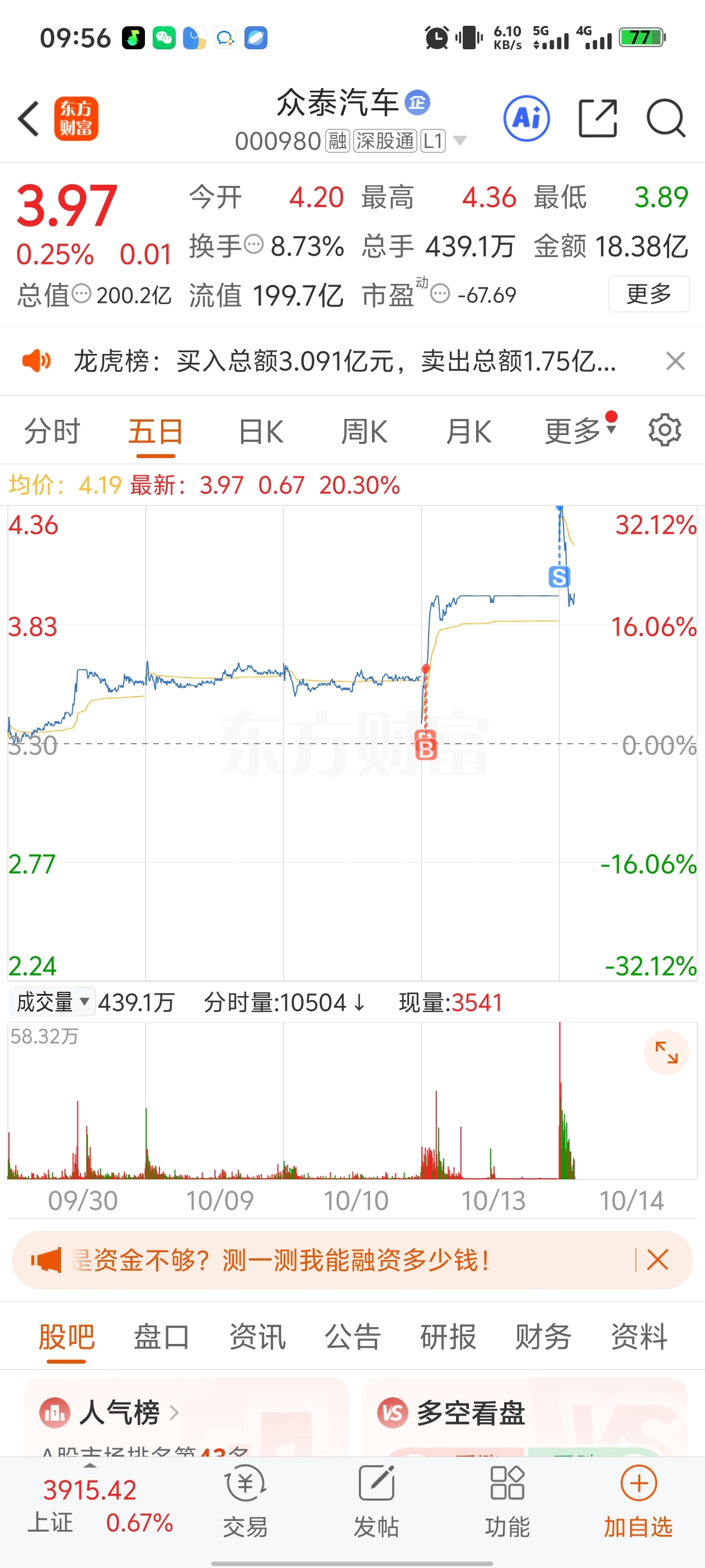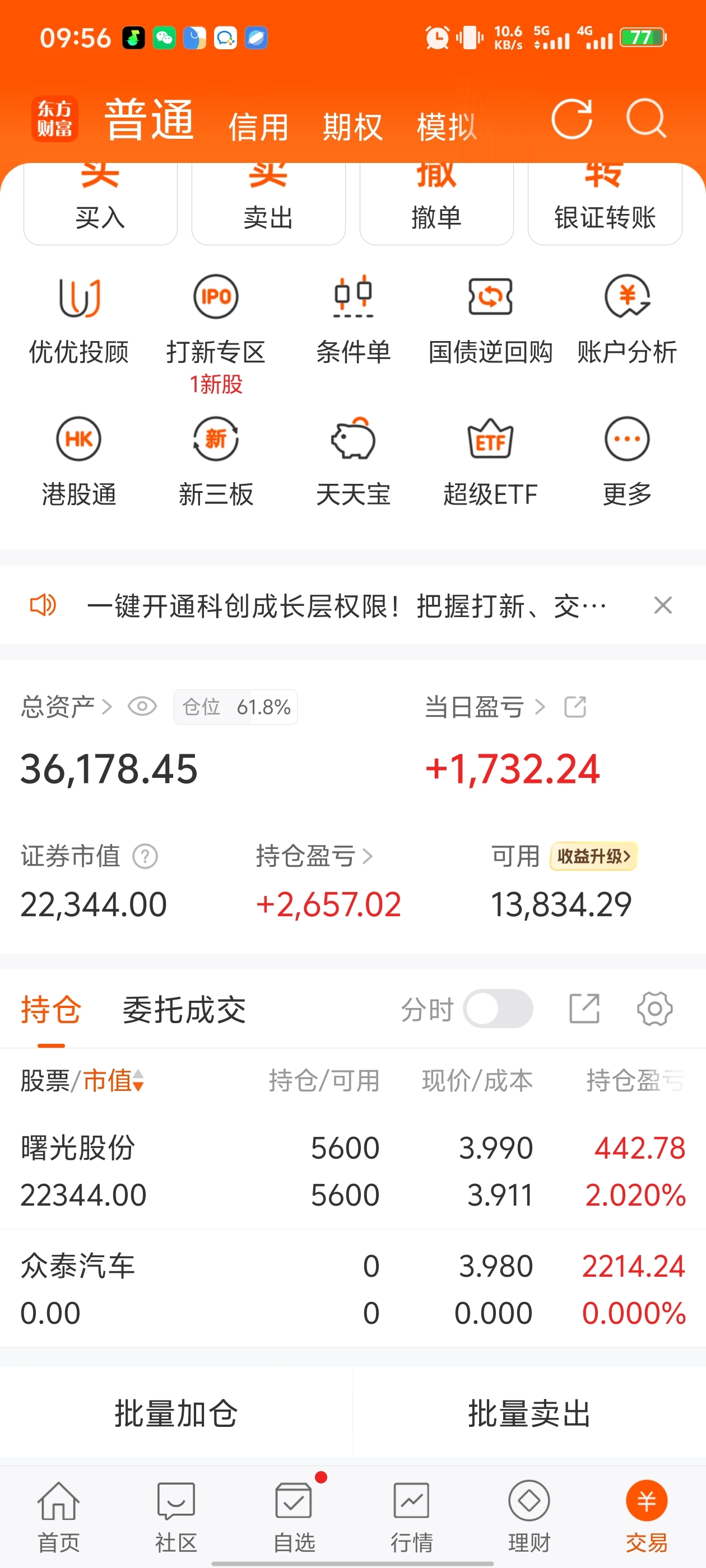 众泰我清仓了,曙光争口气,来个涨停玩玩
