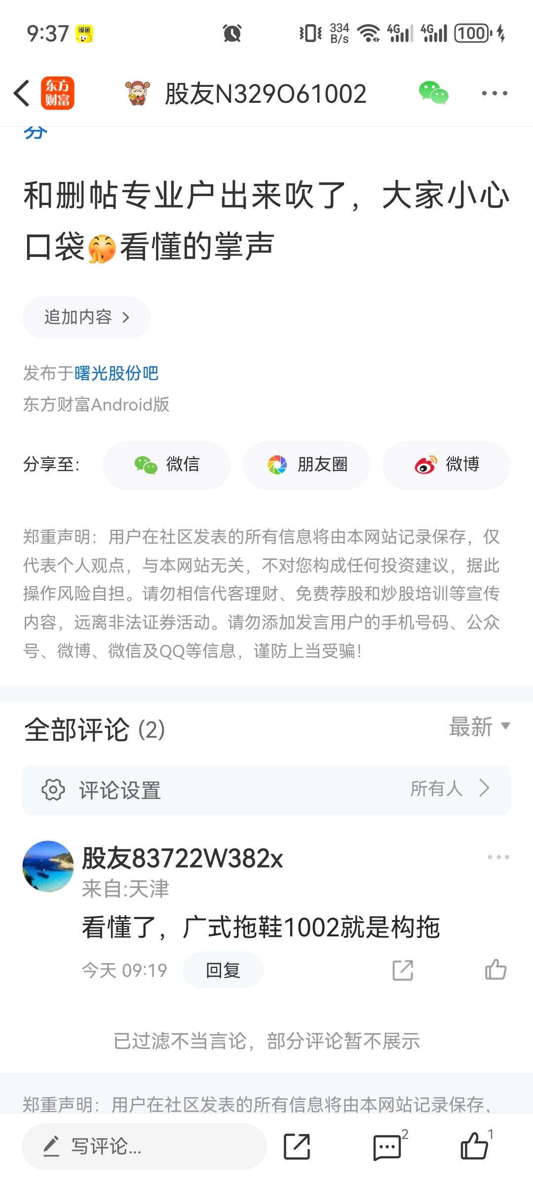 温馨提示: 1.根据《证券法》规定,禁止编造、传播虚假信息或者误导性信息,扰乱证券市场;2.用户在本社区发表的所有资料、言论等仅代表个人观点,与本网站立场无关,不对您构成任何投资建议。用户应基于自己的独立判断,自行决定证券投资并承担相应风险。《东方财富社区管理规定》