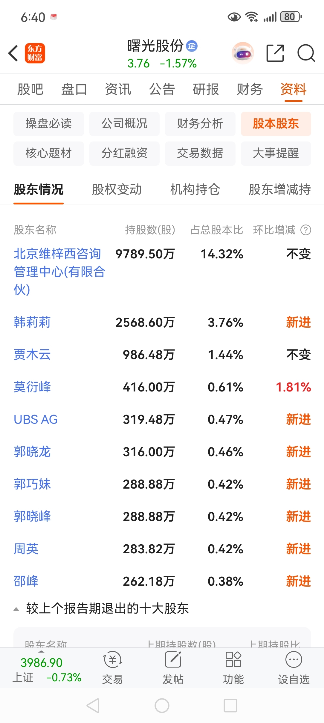 $曙光股份(SH600303)$ 现在曙光最大的利好只有一个,就是大股东绝对控股,没人来争,大股东以百分之十四的股份,就牢牢的控制了曙光。曙光这个破船走向何方,梁家妥妥的说了算,爱给谁就给谁,好无阻力