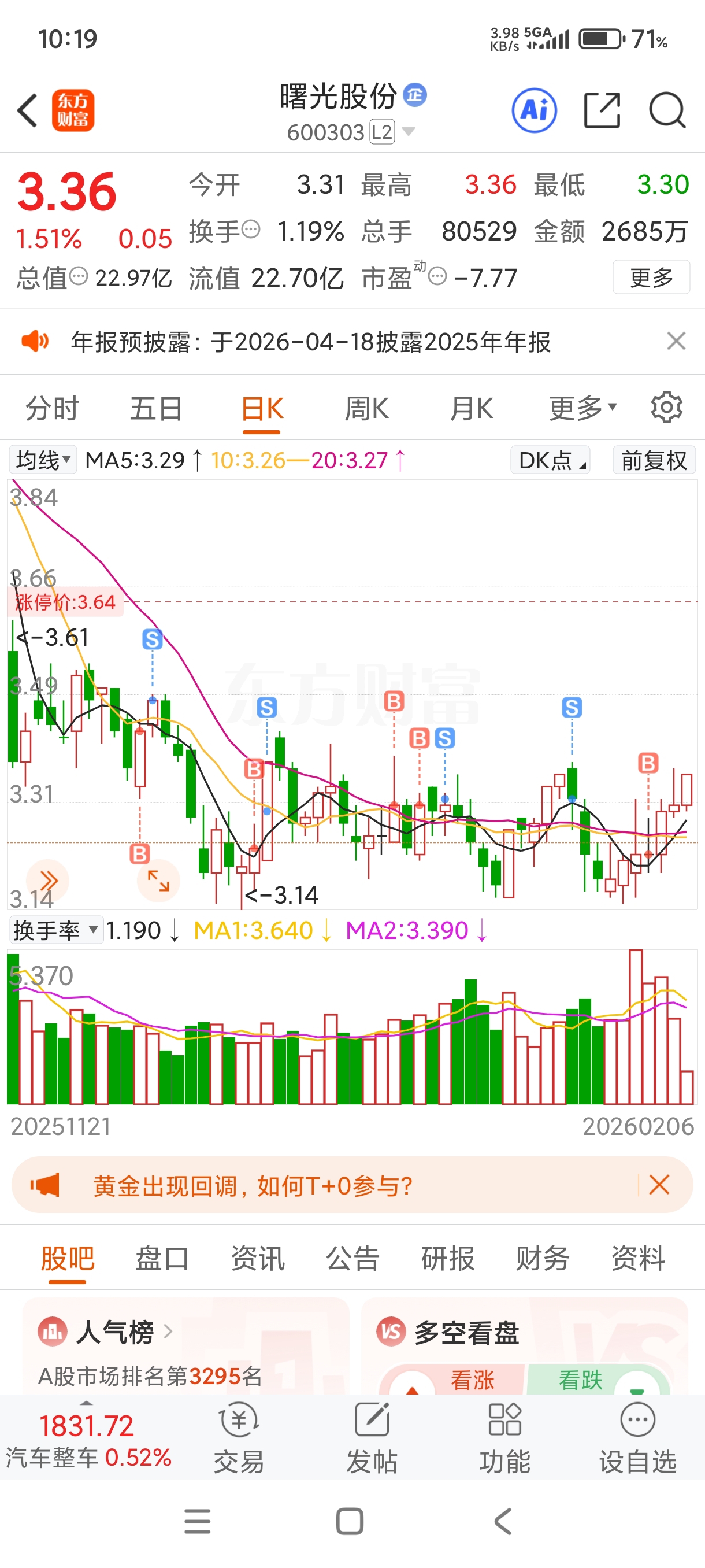 $曙光股份(SH600303)$ 各种T,降低成本,今天选择持有,等你涨停