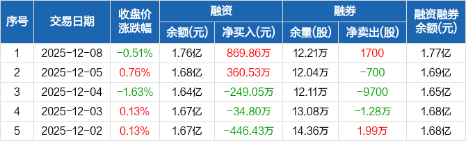 恒顺醋业:融资净买入869.86万元,融资余额1.76亿元(12-08)
