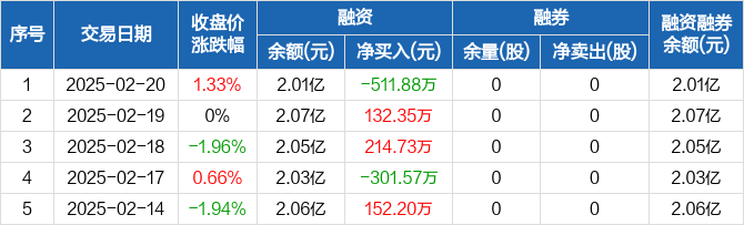 酒钢宏兴:融资净偿还511.88万元,融资余额2.01亿元(02-20)