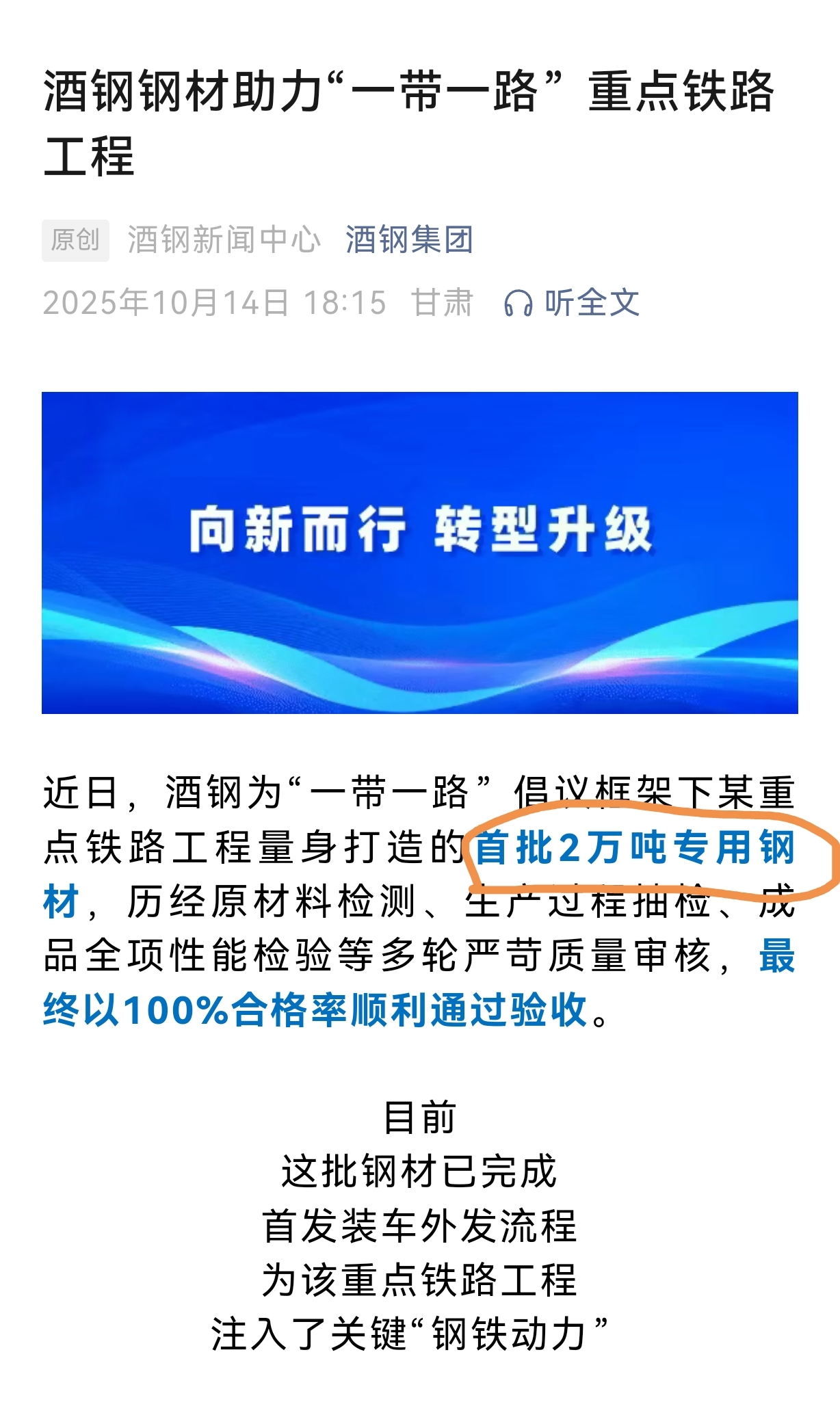 $酒钢宏兴(SH600307)$ 首批两万吨。