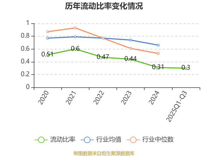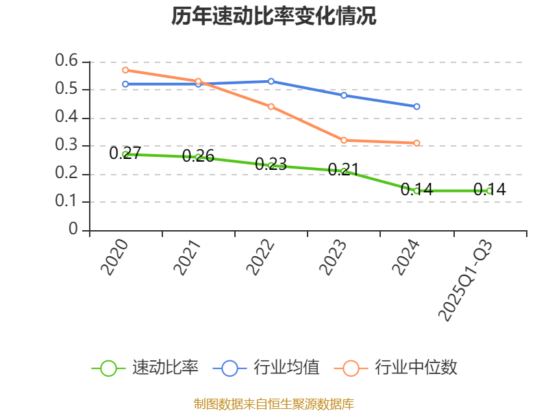 2025年前三季度,公司流动比率为0.3,速动比率为0.14。