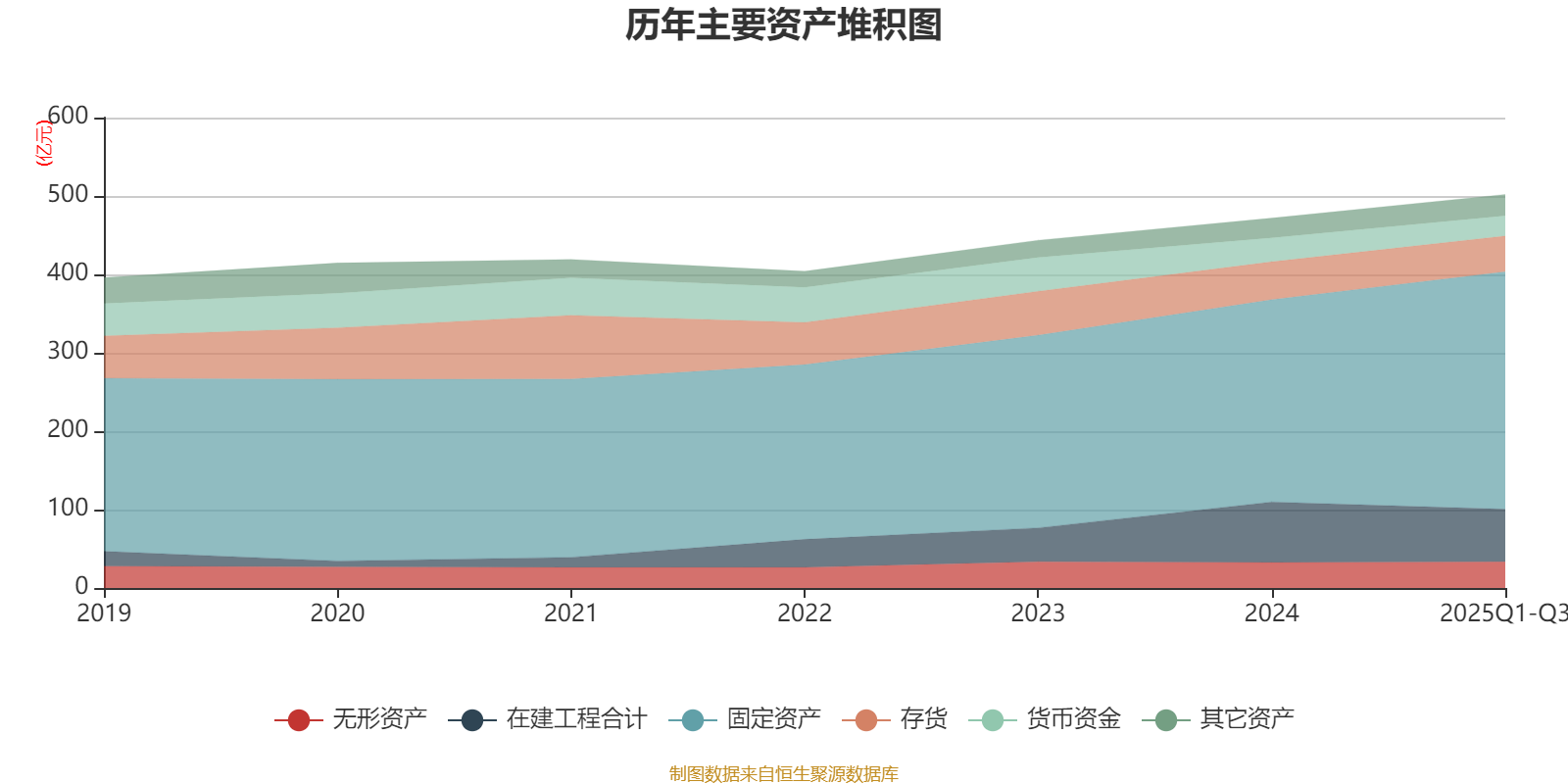 资产重大变化方面,截至2025年三季度末,公司固定资产较上年末增加17.39%,占公司总资产比重上升5.66个百分点;在建工程合计较上年末减少13%,占公司总资产比重下降2.98个百分点;货币资金较上年末减少15.38%,占公司总资产比重下降1.32个百分点;存货较上年末减少5.67%,占公司总资产比重下降1.16个百分点。