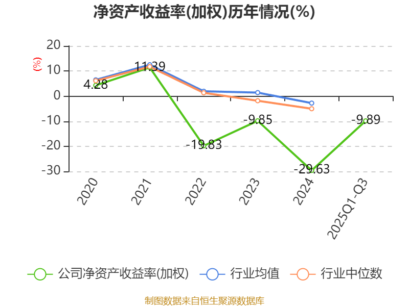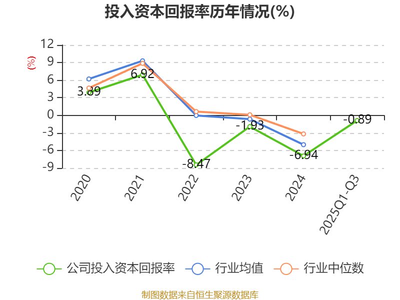 盈利能力方面, 2025年前三季度公司加权平均净资产收益率为-9.89%,同比上升11.28个百分点。公司2025年前三季度投入资本回报率为-0.89%,较上年同期上升4.26个百分点。
