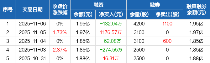 酒钢宏兴:融资净偿还132.04万元,融资余额1.95亿元(11-06)