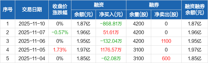 酒钢宏兴:融资净偿还868.81万元,融资余额1.87亿元(11-10)