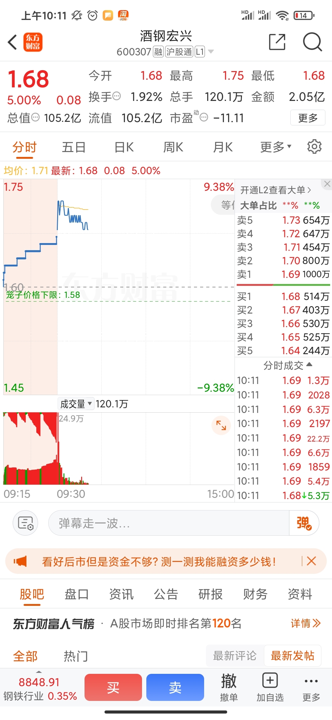 $酒钢宏兴(SH600307)$ 僵尸股,推一步走一步。有量有价,无量无价。