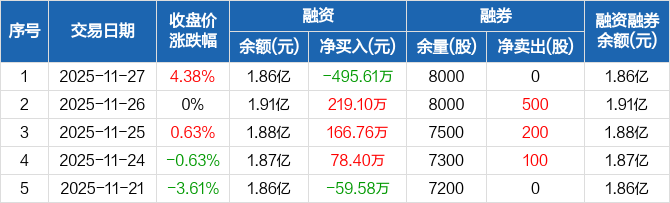 酒钢宏兴:融资净偿还495.61万元,融资余额1.86亿元(11-27)