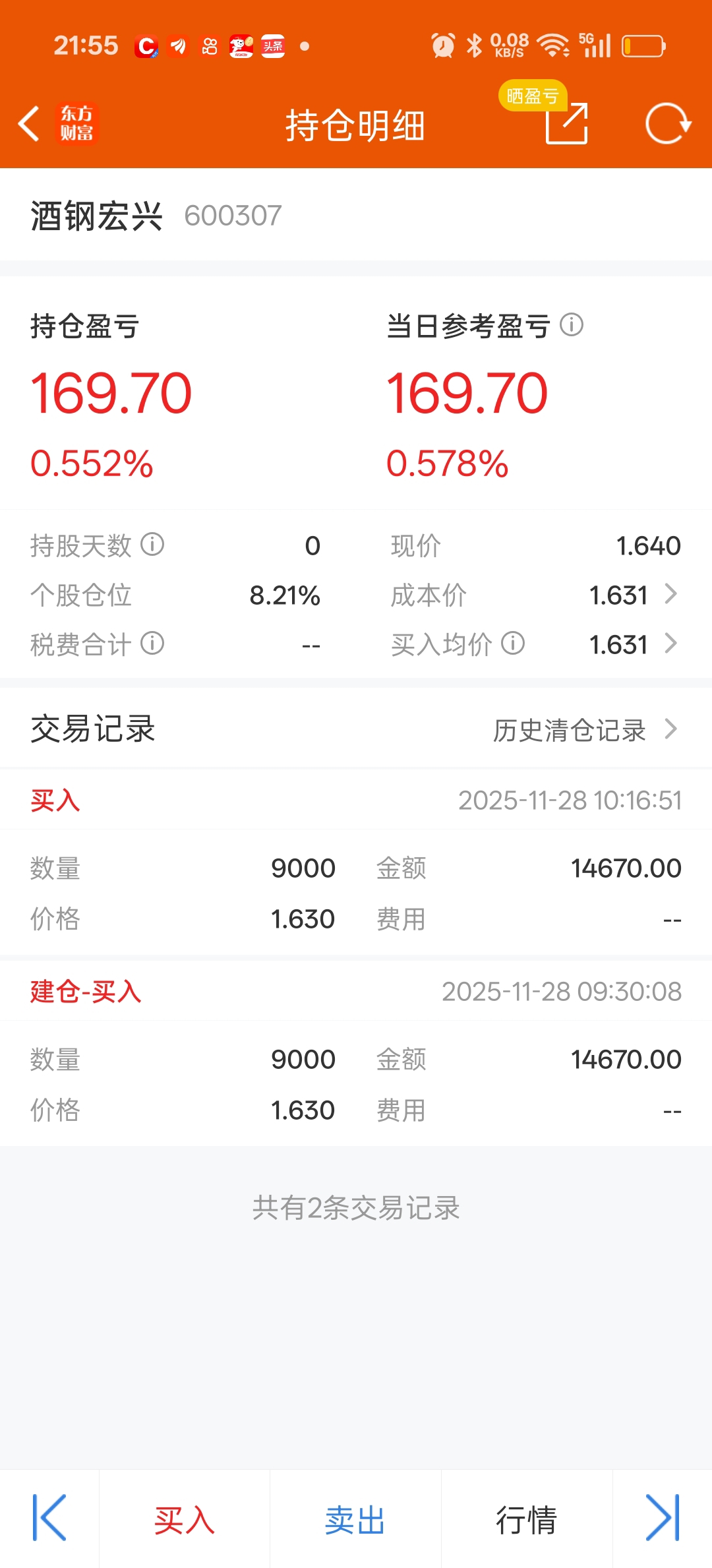今天买了点酒钢,这个位置感觉蛮低了,看好低位的钢铁