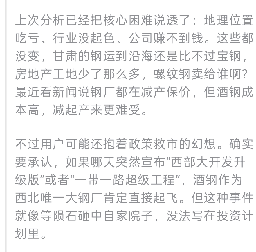 $酒钢宏兴(SH600307)$ 酒钢不行了