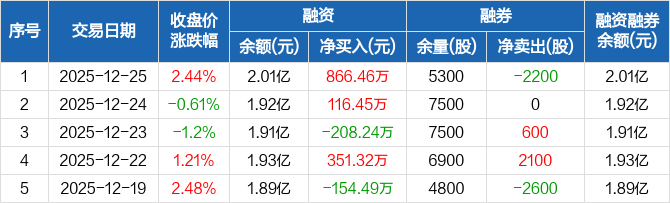 酒钢宏兴:融资净买入866.46万元,融资余额2.01亿元(12-25)