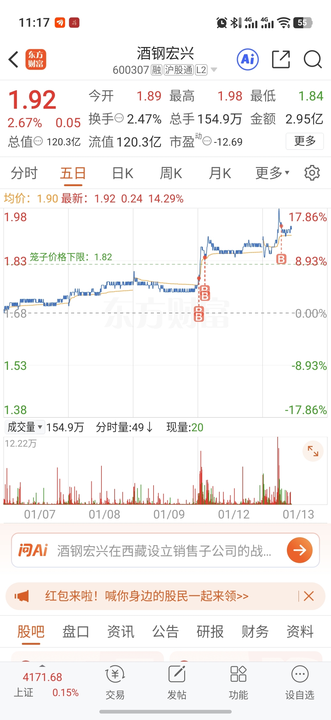 $酒钢宏兴(SH600307)$ 这都不进,那就去买零钱通了