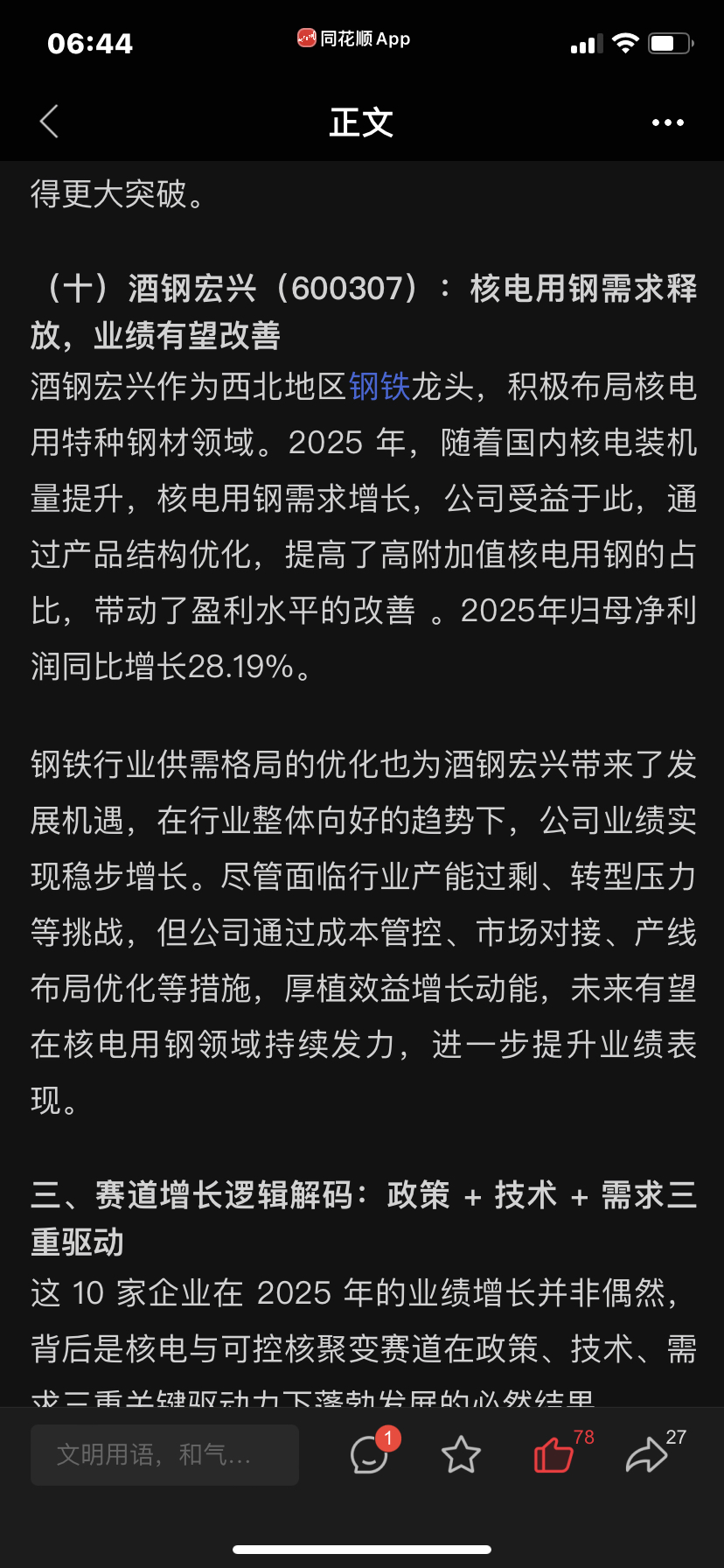 $酒钢宏兴(SH600307)$ 分析的很中肯!今天如果你如果爱搭不理,明天你就会高攀不起!纯粹简单的道理!看好的坚定持有!#强势机会# #股市怎么看# #收盘点评#