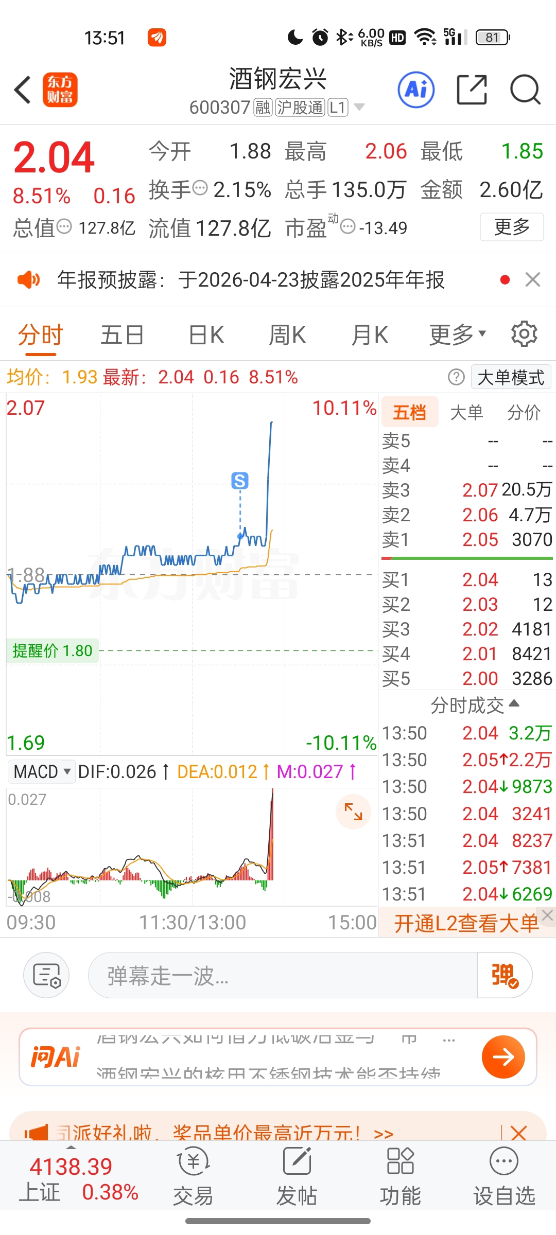 $酒钢宏兴(SH600307)$ 无语了,一抛就涨停