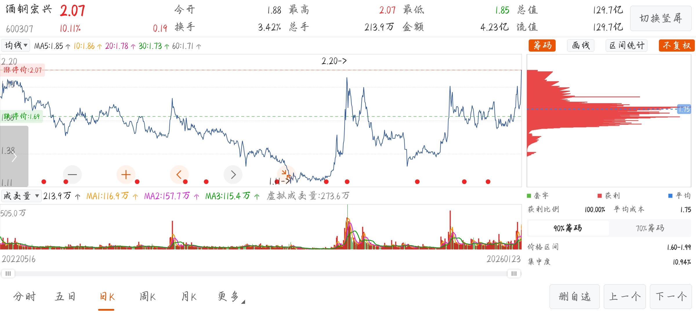 $酒钢宏兴(SH600307)$ 你看看,这筹码峰