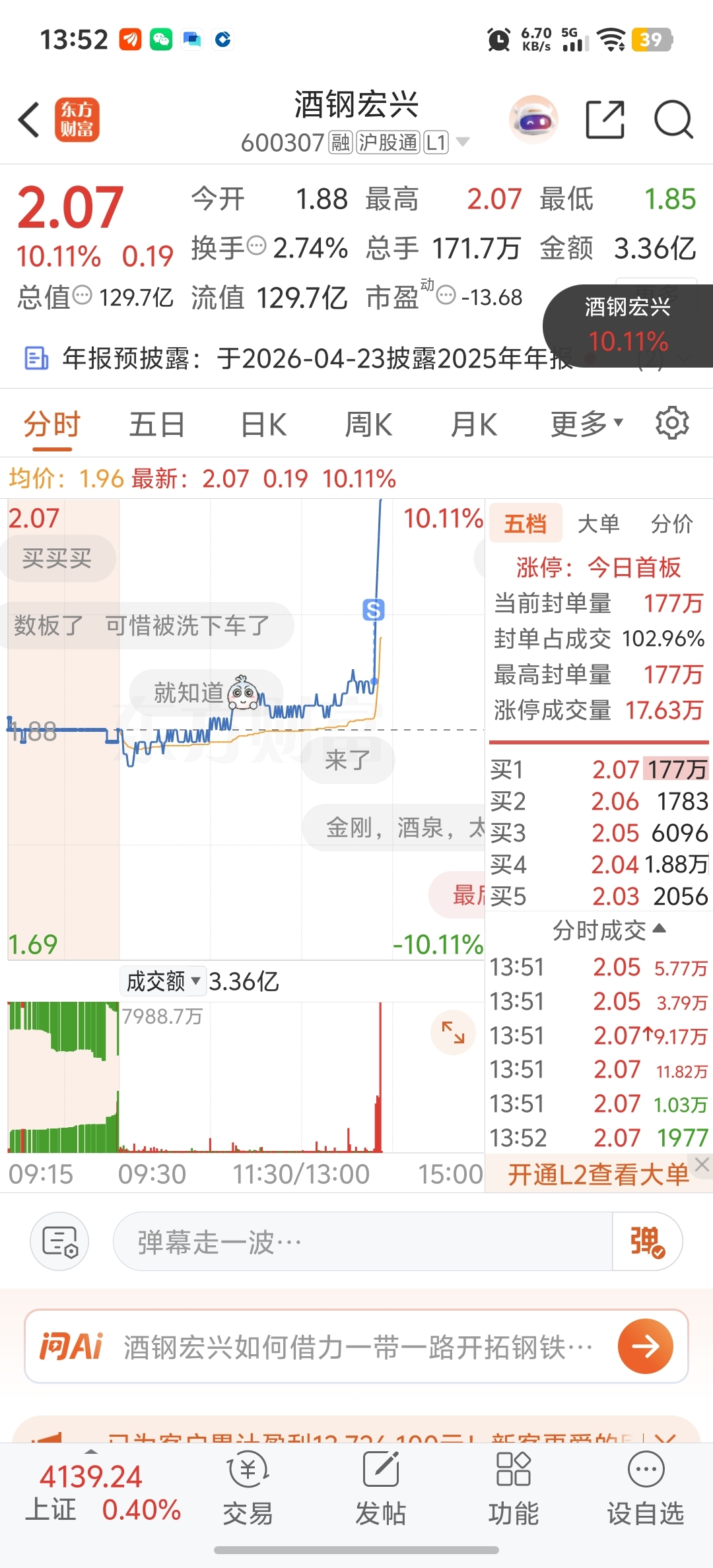 $酒钢宏兴(SH600307)$ 吐血,刚挂单就拉,你快10秒拉不行吗?