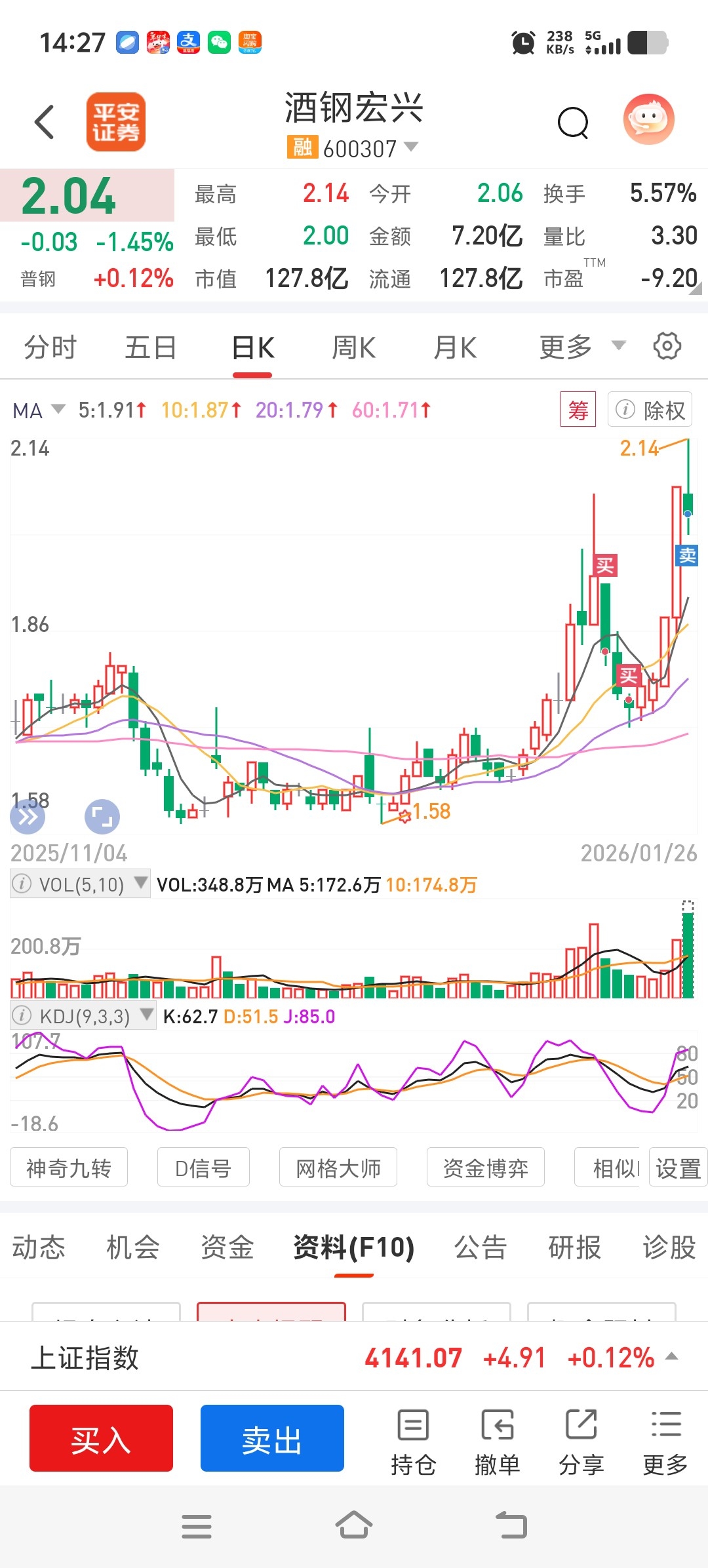 $酒钢宏兴(SH600307)$ 你们玩,走了,