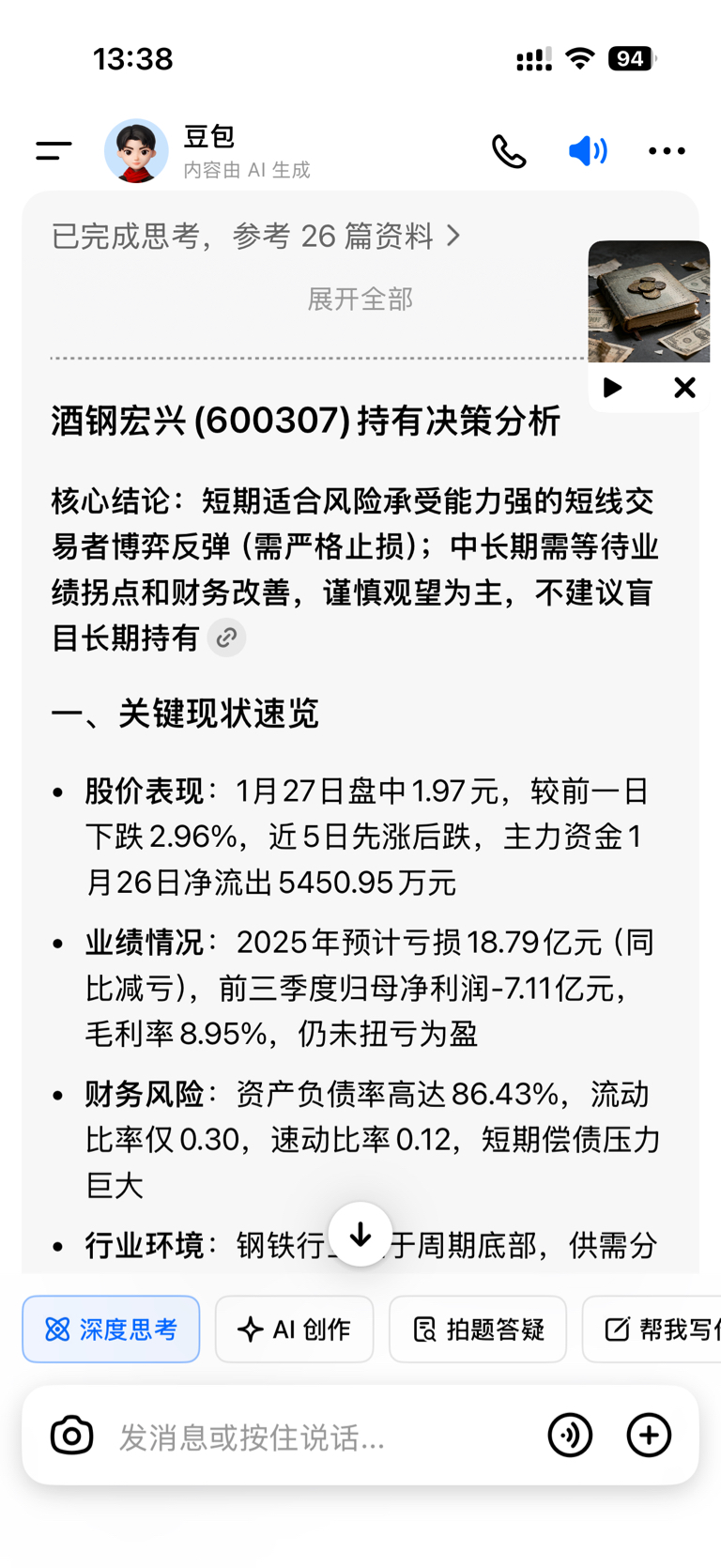 $酒钢宏兴(SH600307)$ 稍纵即逝