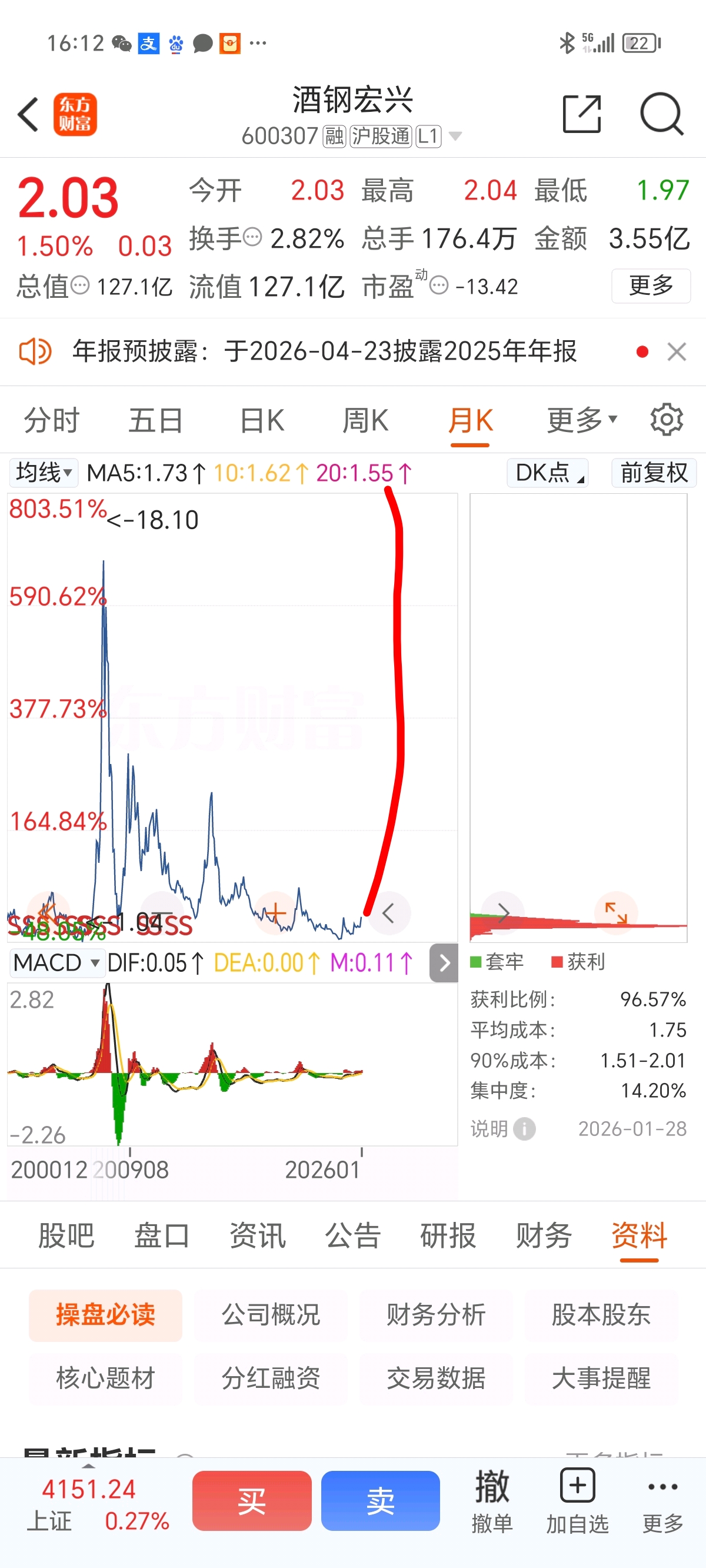 $酒钢宏兴(SH600307)$ 2027年 11月份 20元左右