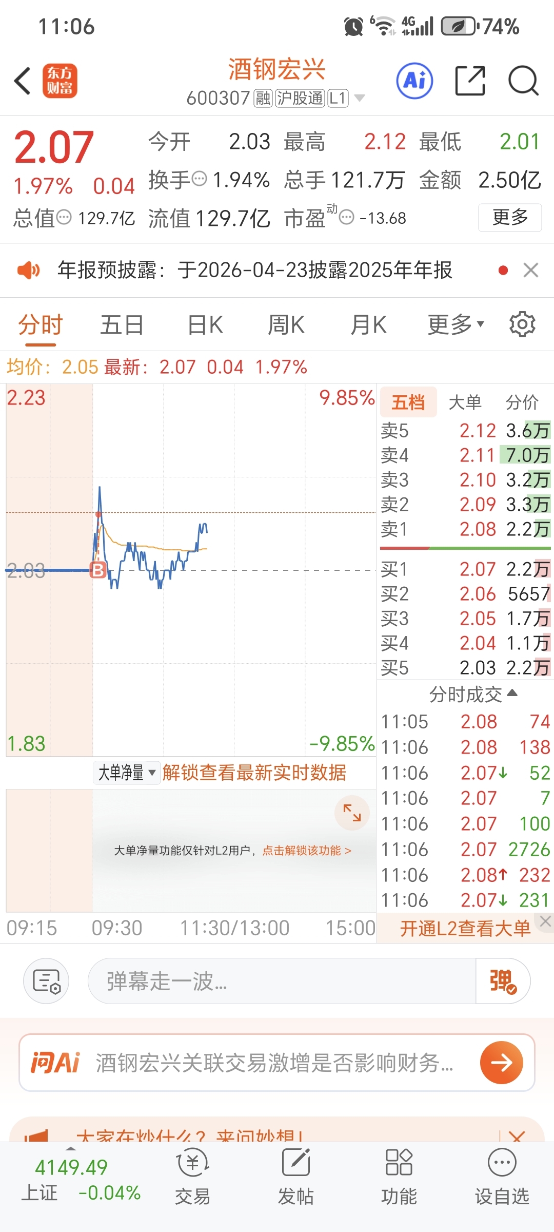 $酒钢宏兴(SH600307)$ 我早上刚进来,庄家大哥一起长虹