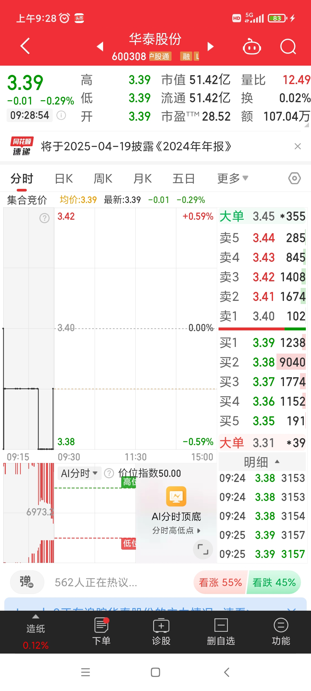 $华泰股份(SH600308)$ 竞价第一次成交量这么大