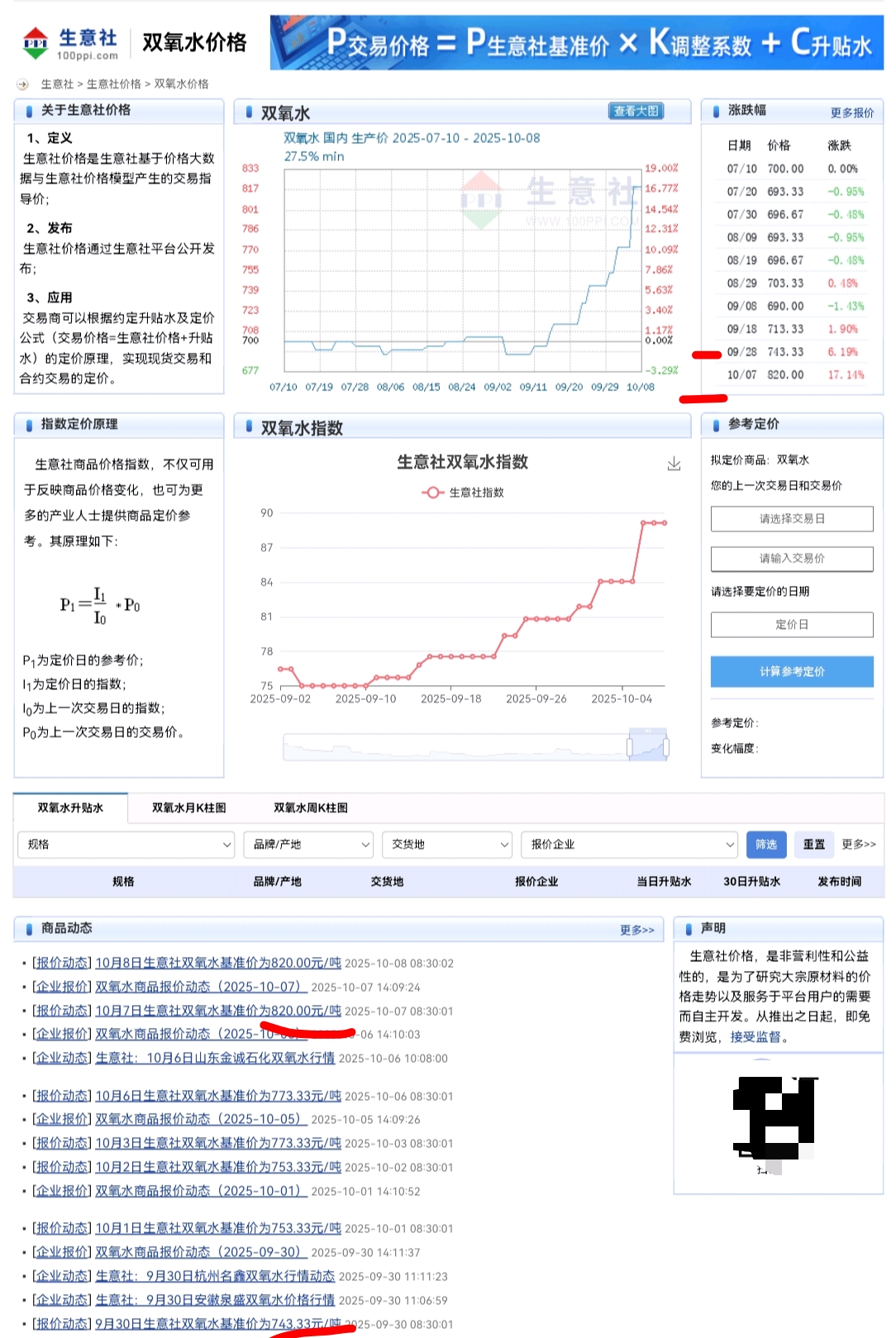 华泰股份的双氧水价格飞涨了,节前才743元,节后820元
