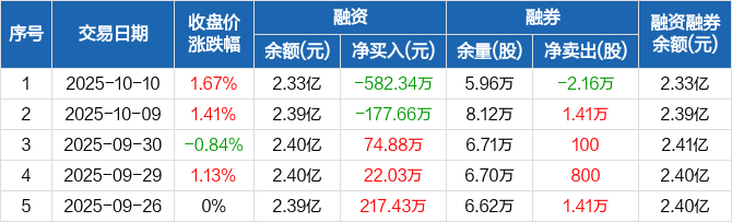 华泰股份:融资净偿还582.34万元,融资余额2.33亿元(10-10)