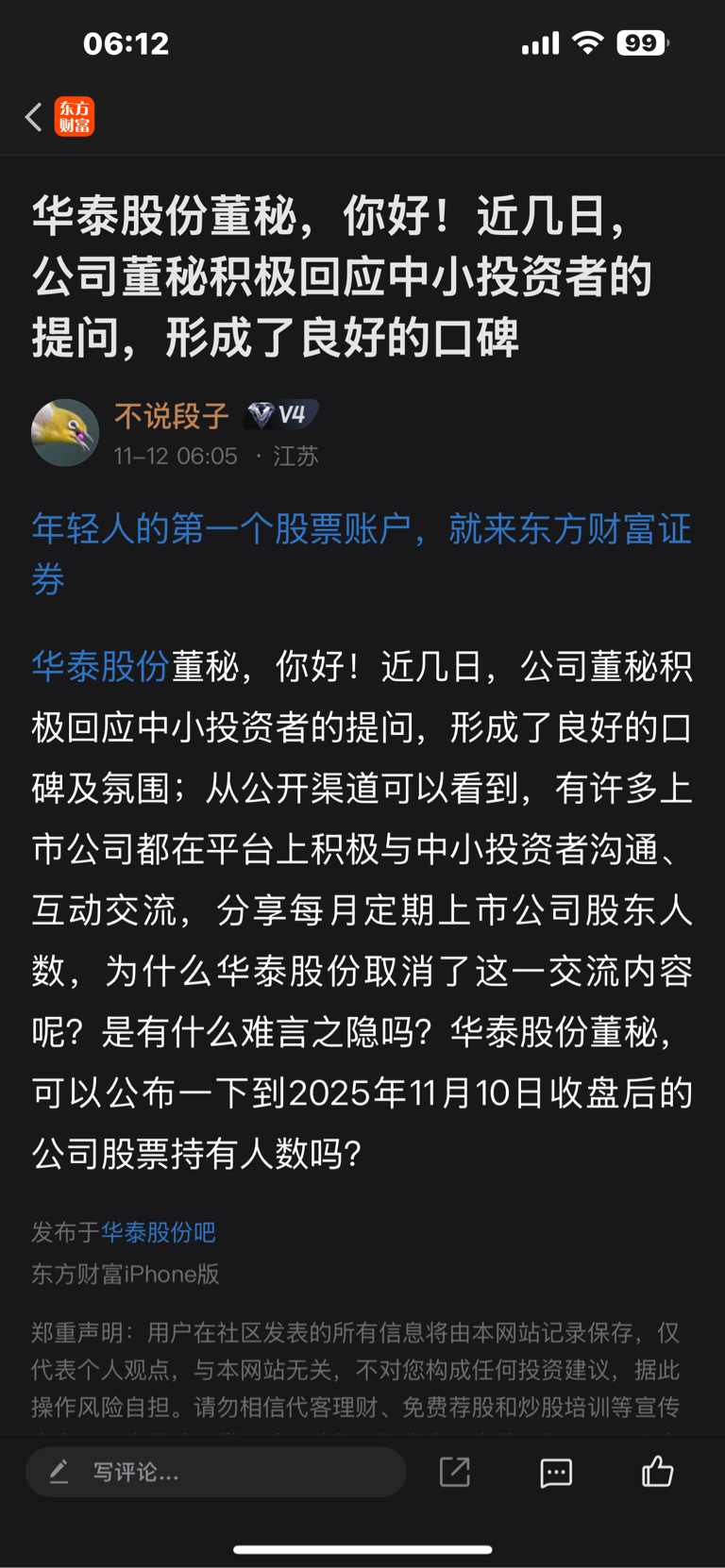 郑重声明:用户在财富号/股吧/博客等社区发表的所有信息(包括但不限于文字、视频、音频、数据及图表)仅代表个人观点,与本网站立场无关,不对您构成任何投资建议,据此操作风险自担。请勿相信代客理财、免费荐股和炒股培训等宣传内容,远离非法证券活动。请勿添加发言用户的手机号码、公众号、微博、微信及QQ等信息,谨防上当受骗!