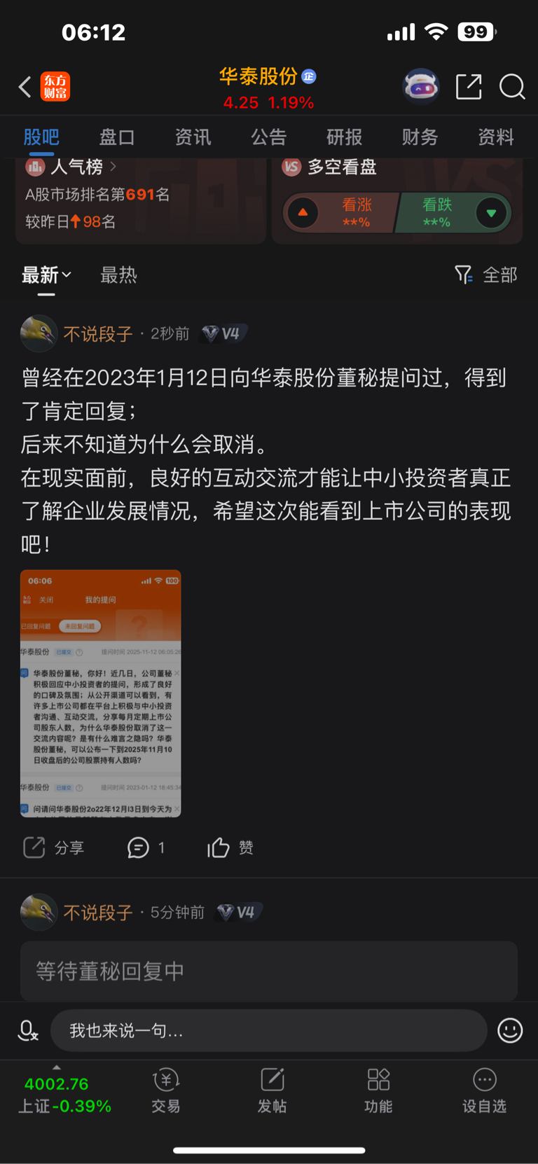 温馨提示: 1.根据《证券法》规定,禁止编造、传播虚假信息或者误导性信息,扰乱证券市场;2.用户在本社区发表的所有资料、言论等仅代表个人观点,与本网站立场无关,不对您构成任何投资建议。用户应基于自己的独立判断,自行决定证券投资并承担相应风险。《东方财富社区管理规定》