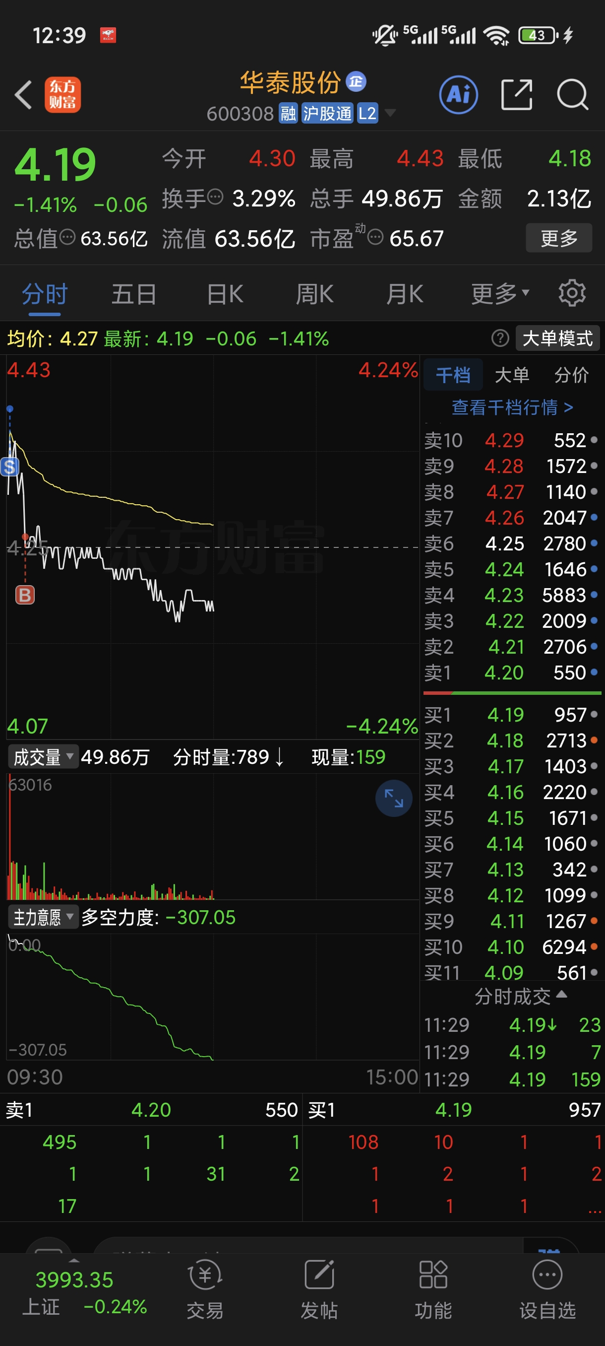 $华泰股份(SH600308)$ 接早了,主力明天砸409